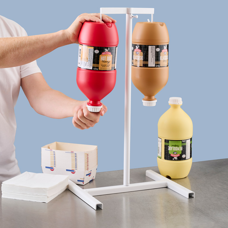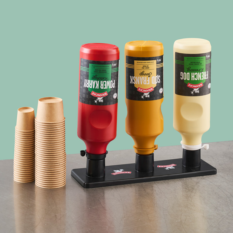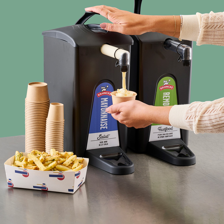 Vores sortiment er udviklet til professionelle – fra mini-poser og pumper til bag-in-box, spande og bomber. Alt er skabt til at fungere både bag disken og i selvbetjente områder. Det giver dig én samlet løsning, der sikrer høj hygiejne og nem håndtering i alle arbejdsgange.